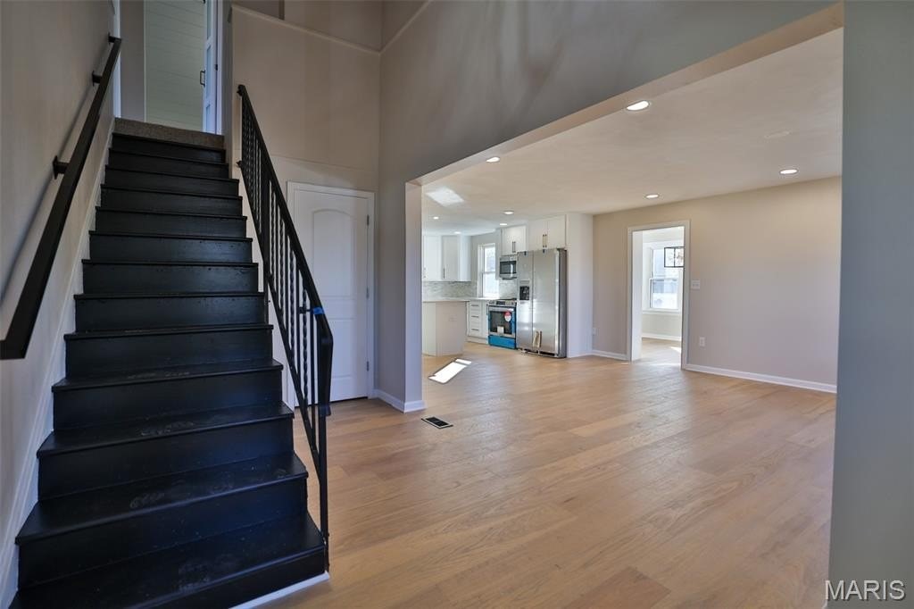 This charming, updated 4-bedroom, 3-bath home is located in the heart of Columbia. Step into the welcoming two-story foyer with a wood ceiling and chandelier, opening to a spacious living room and kitchen-perfect for entertaining family and friends. The newly remodeled kitchen boasts quartz countertops, a center island, and stainless steel appliances, making it ideal for holiday dinners. The main floor features two bedrooms and a full bath, while upstairs you'll find two more spacious bedrooms and a half bath. The lower level offers a recreational space and a full bathroom, as well as a laundry area with additional storage. A detached one-car garage and a large, level backyard complete this beautiful home.